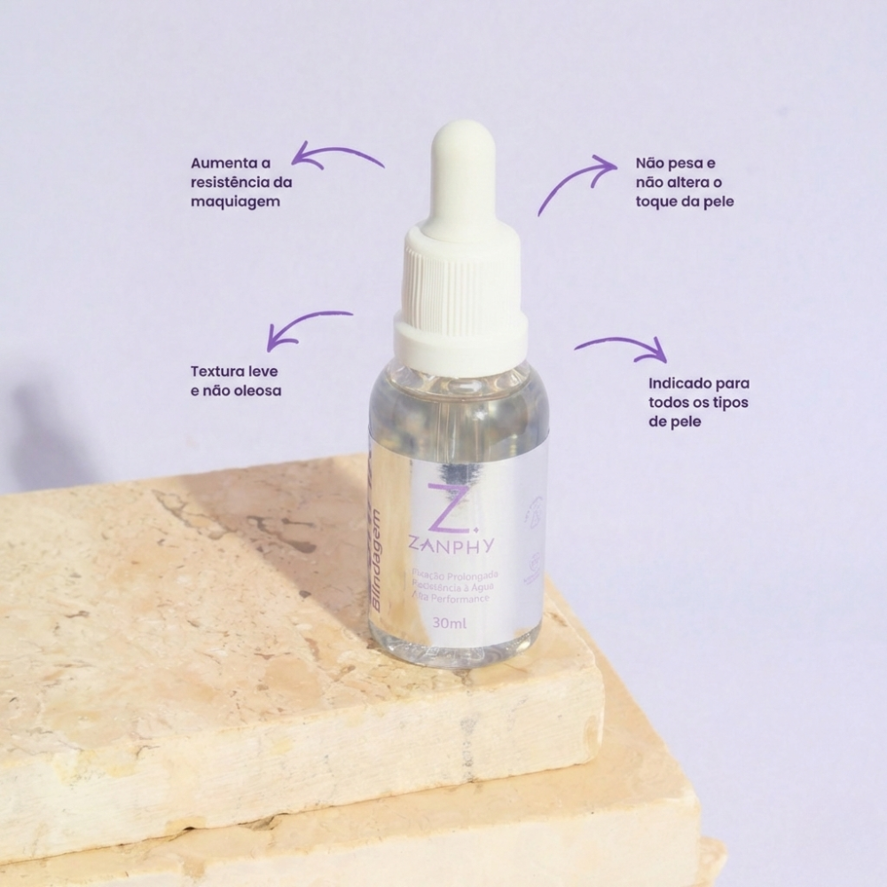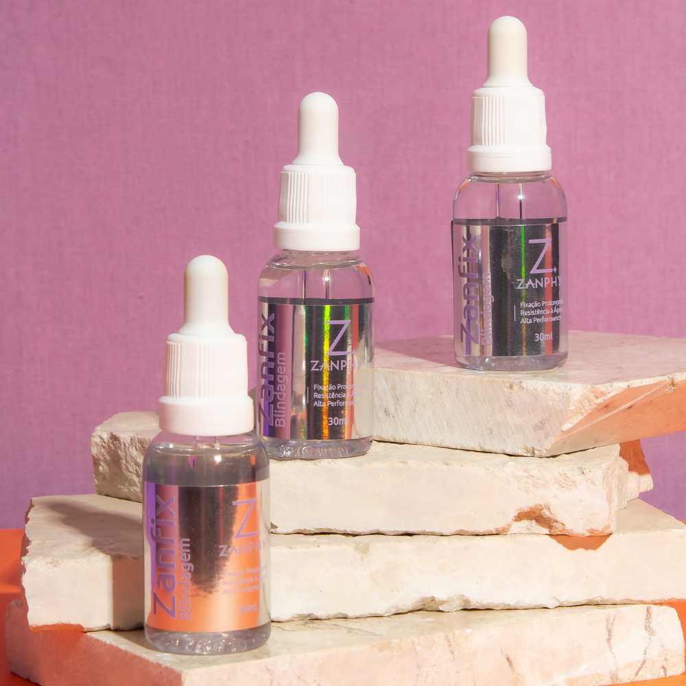 ZANFIX é um potencializador de maquiagem desenvolvido para aumentar a resistência e a durabilidade da make, melhorar o acabamento e facilitar a aplicação dos produtos, sem pesar na pele, além de diluir aquele produto que você precisa melhorar textura.