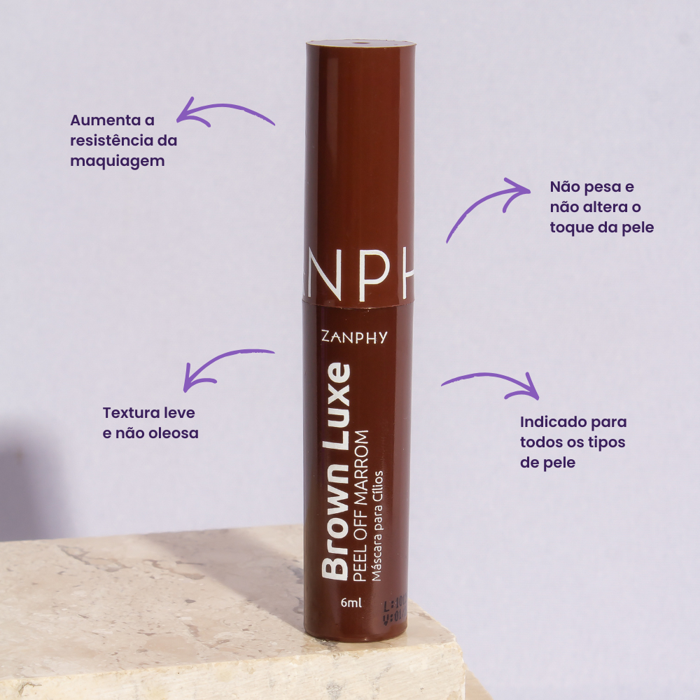 A Máscara Marrom Brown Luxe Zanphy combina definição impecável com alongamento elegante, tudo isso sem aquele efeito pesado. A fórmula nutritiva com óleos especiais cuida dos seus cílios enquanto você se maqueia, criando um filme uniforme que não borra durante o dia. E o melhor? Remove-se facilmente tipo peel off, sem puxar ou danificar.