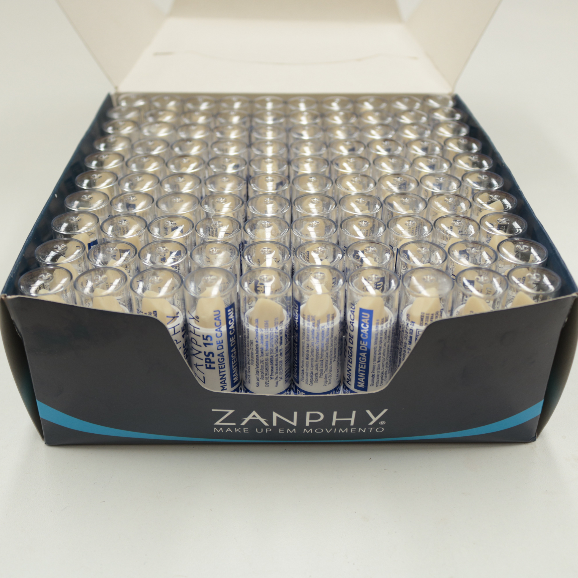 CONTÉM: 100 unidades de Manteiga de Cacau Bastão FPS15
