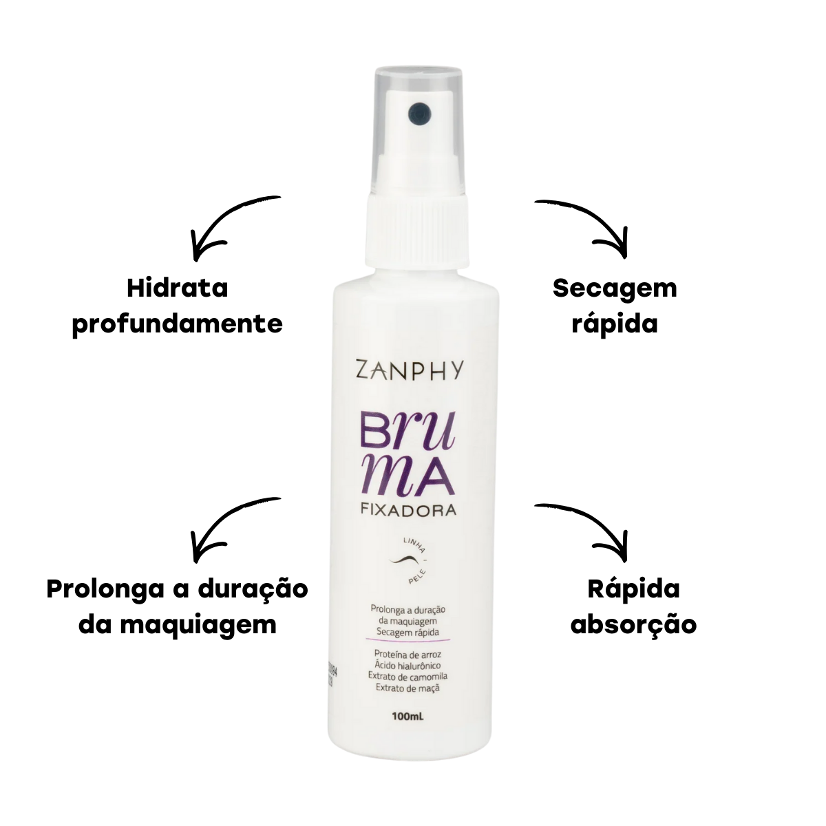 A Bruma Fixadora Zanphy é o produto ideal para garantir maquiagem impecável por muito mais tempo, com conforto e cuidado para a pele. Sua fórmula multifuncional fixa, hidrata e refresca, proporcionando um acabamento natural, uniforme e profissional.