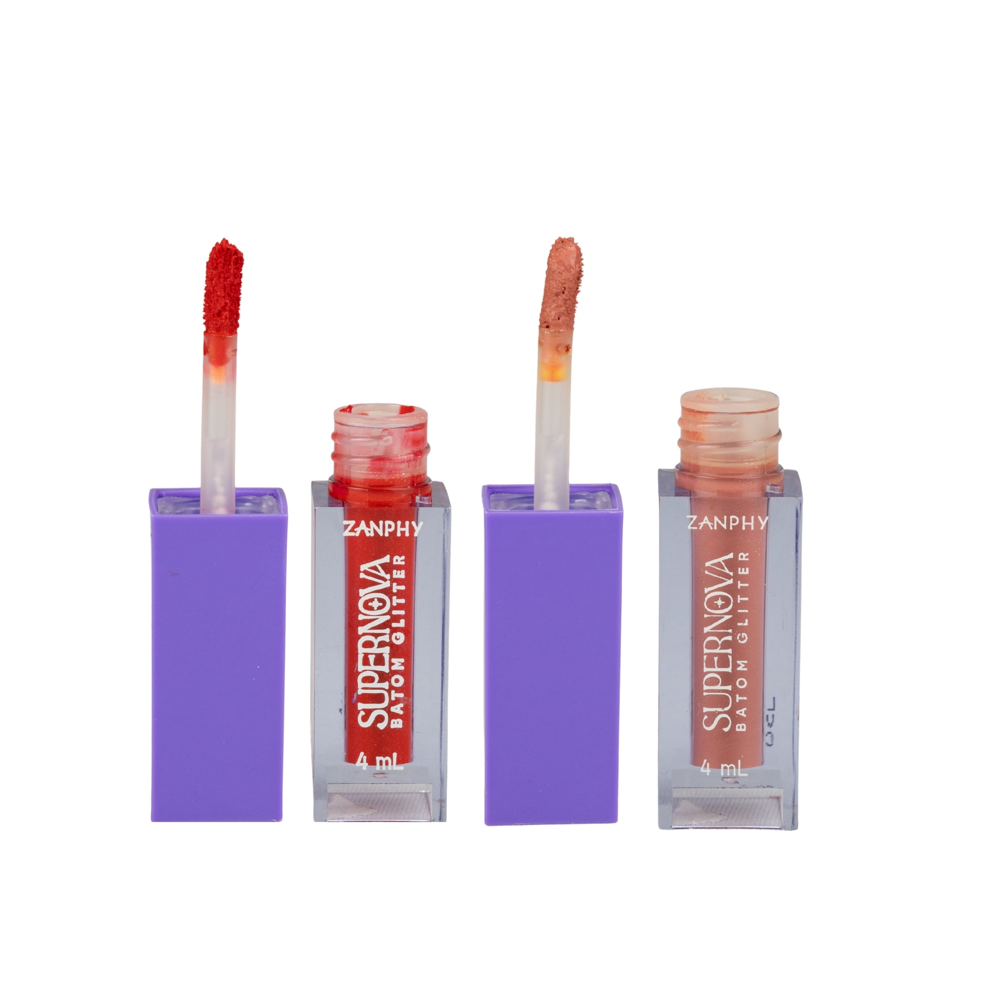 O kit com 2 cores SuperNova entrega versatilidade e performance: para variar o look do dia à noite. Acabamento matte confortável que, ao friccionar os lábios, revela um brilho/glitter moderno. A fórmula Long Lasting mantém a cor bonita por horas, enquanto Ácido Hialurônico e Vitamina E garantem lábios macios e cuidados. Vegano e não testado em animais.