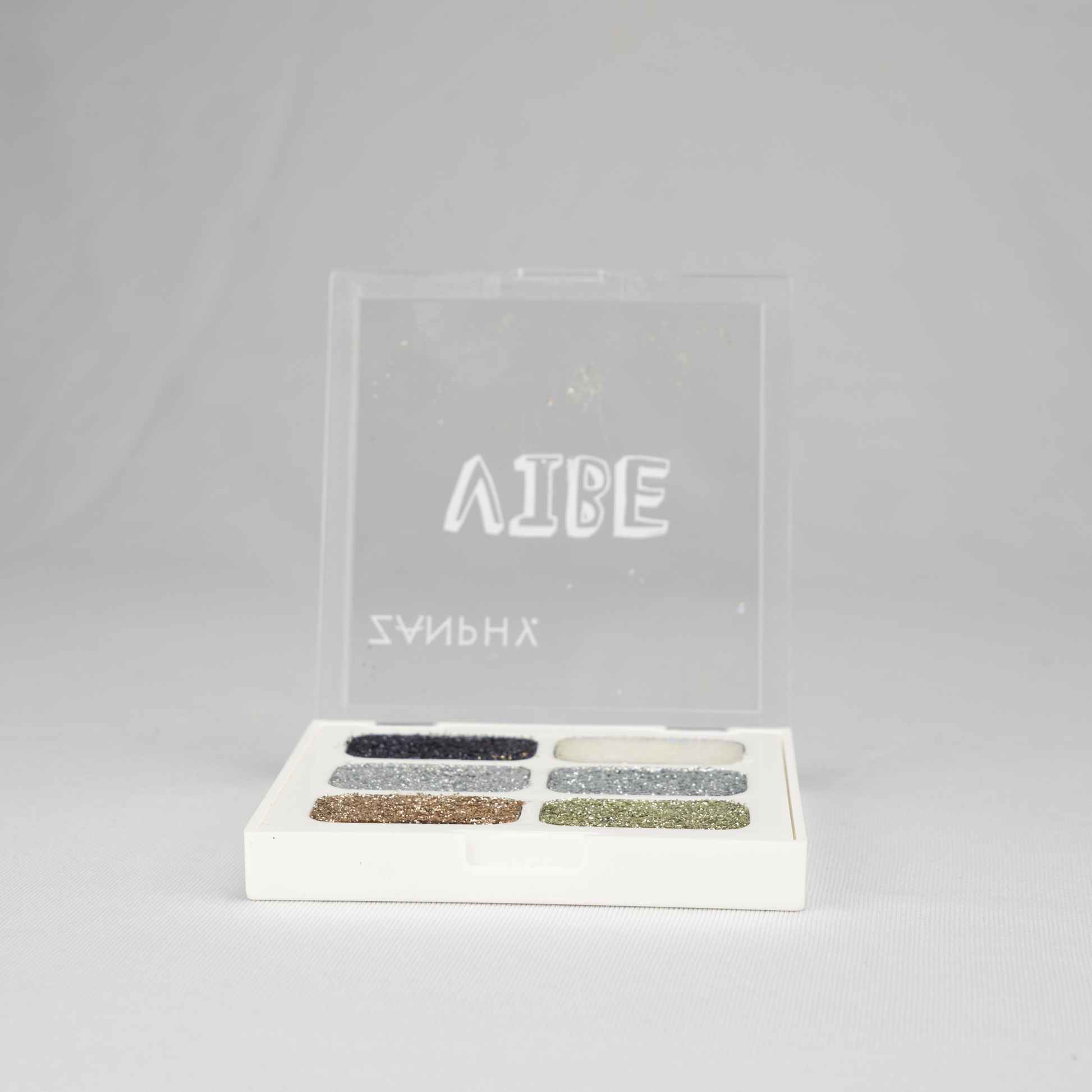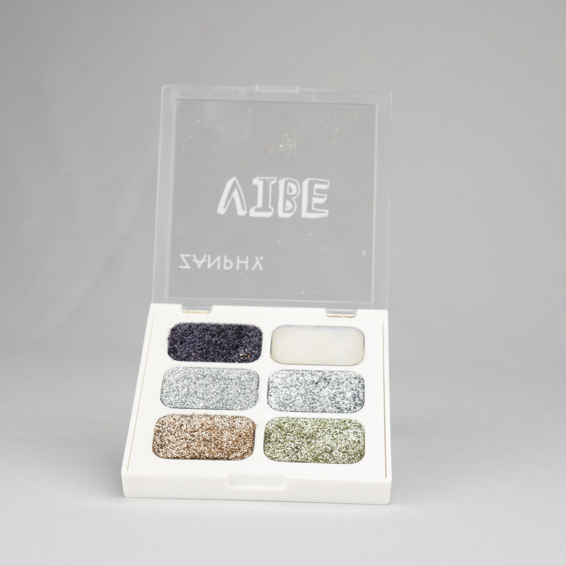 Com 6 cores de glitter metalizados prensado, há nuances em brilhos diferentes quando encontram a luz ambiente. Não é necessário utilizar primer ou fixador para aplicar, o que promete longa duração.